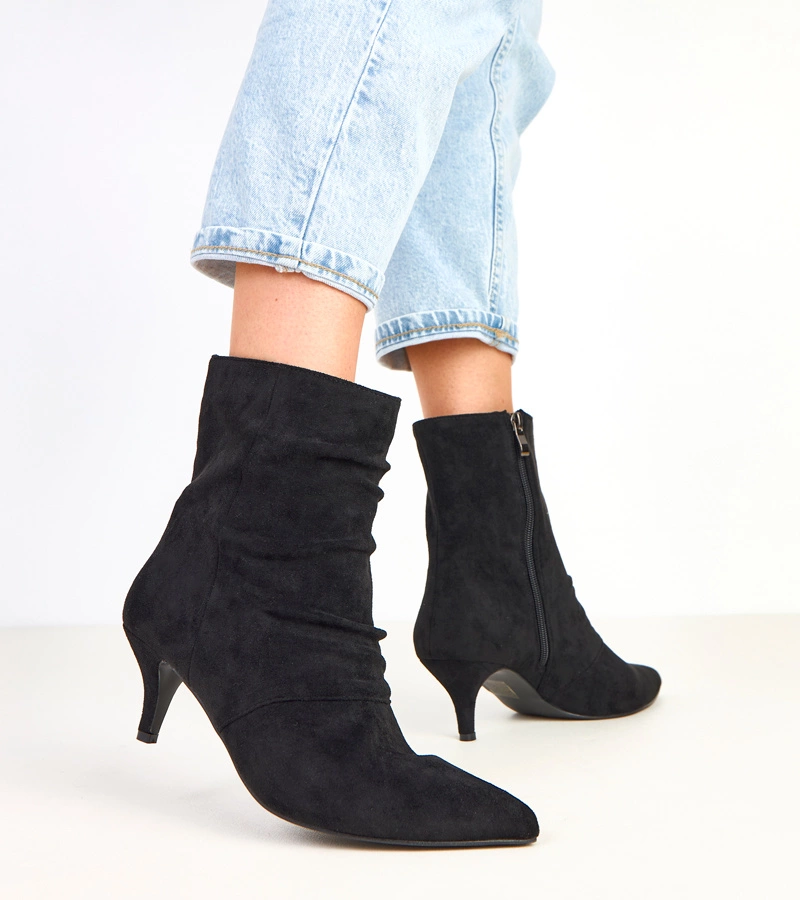 Černé kotníkové boty na nízkém podpatku s řasením Karen