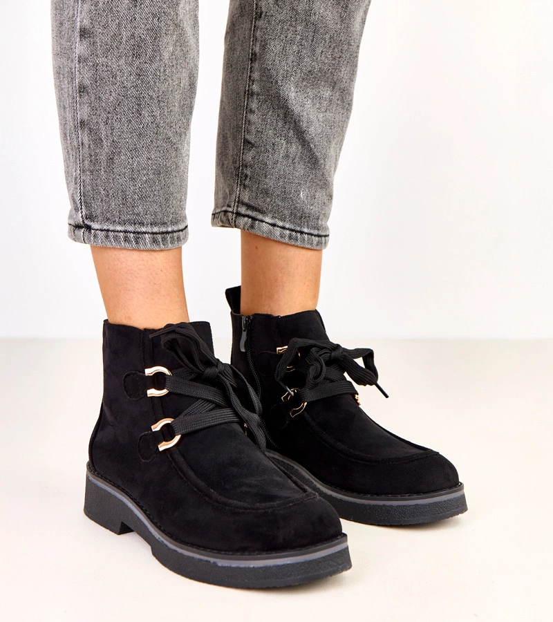 Černé kotníkové boty na platformě s kovovými ozdobami Ebony