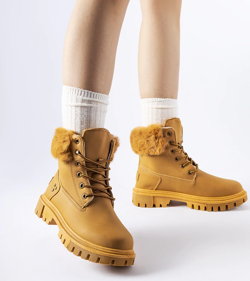 Hnědé zimní boty s ozdobným kožešinkem Alberta
