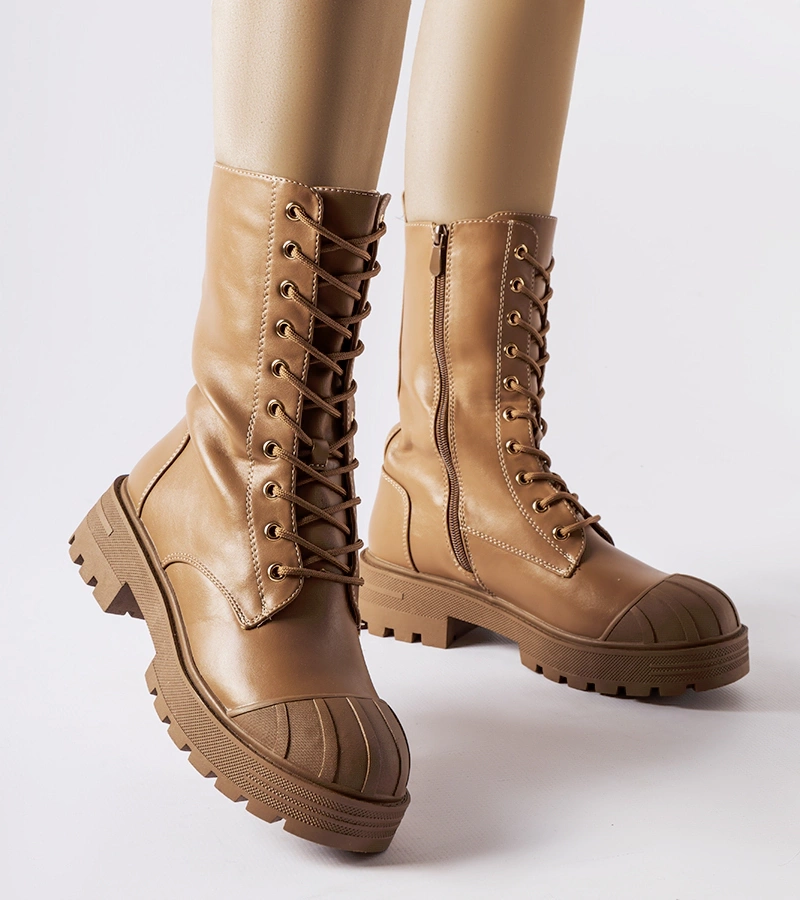 Béžové šněrovací boty-workers Rive
