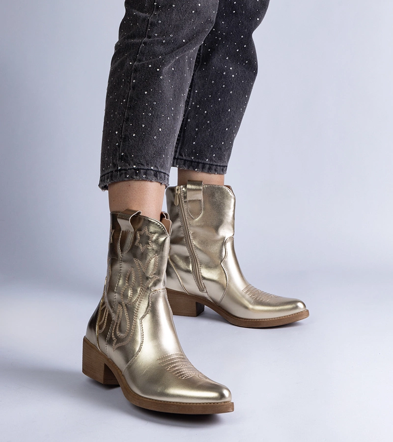 Zlaté dámské kotníkové kovbojské boty na podpatku metalické Madeira