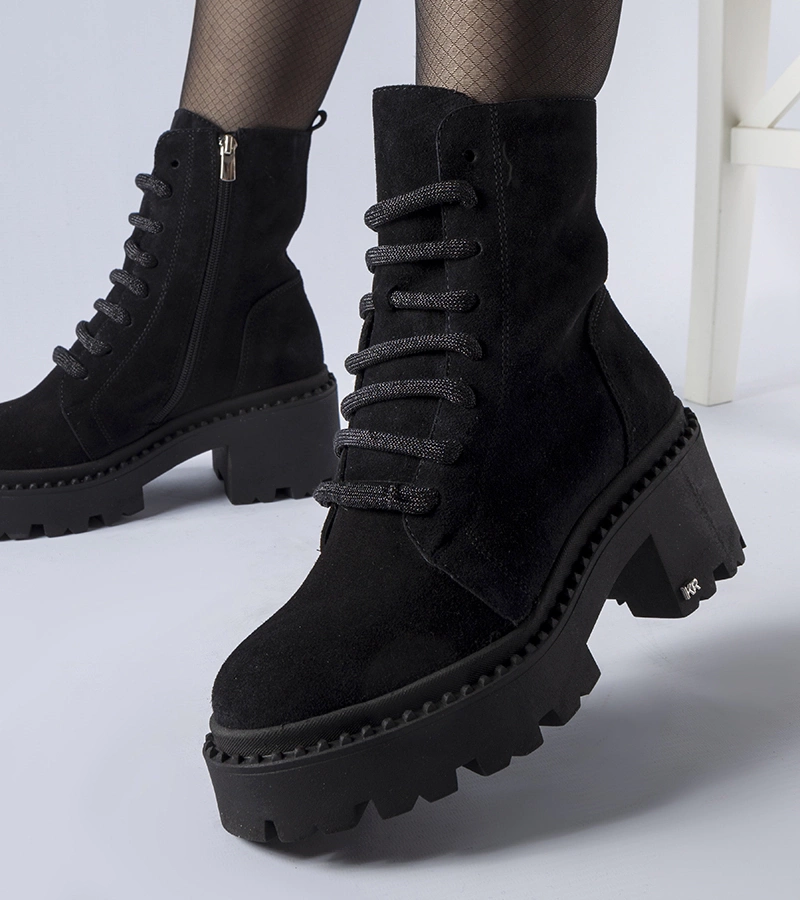 Černé kotníčkové boty s kubickými zirkony z ekologického semišu Sfaranda