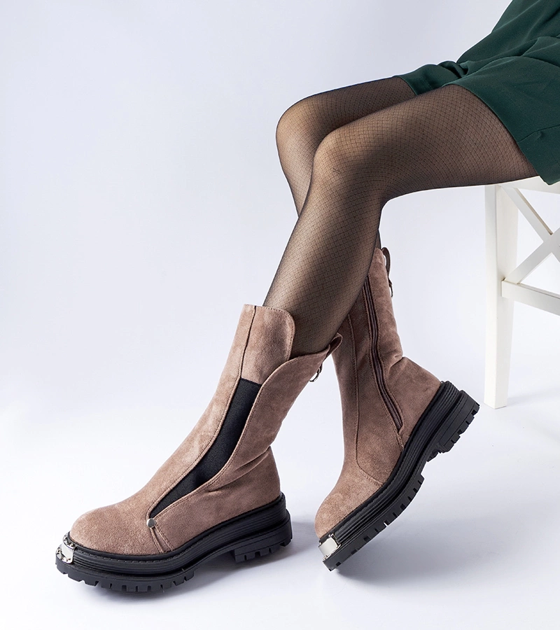 Hnědé ponožkové boty s tlustou podrážkou Vitto
