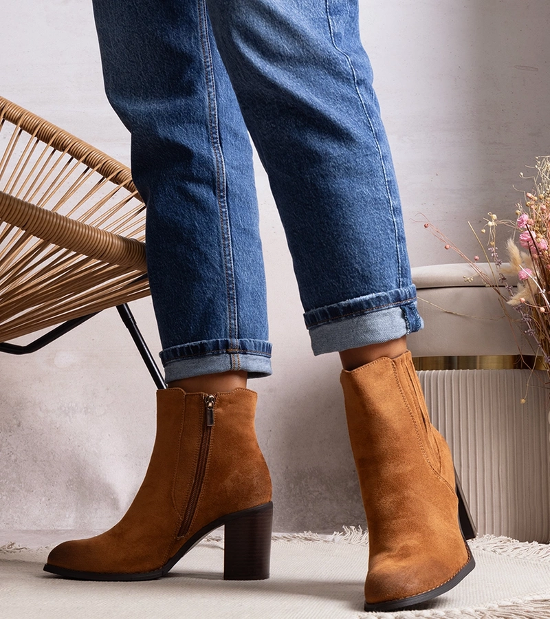 Hnědé botky na nízkém podpatku z ekokoženky Nemaha