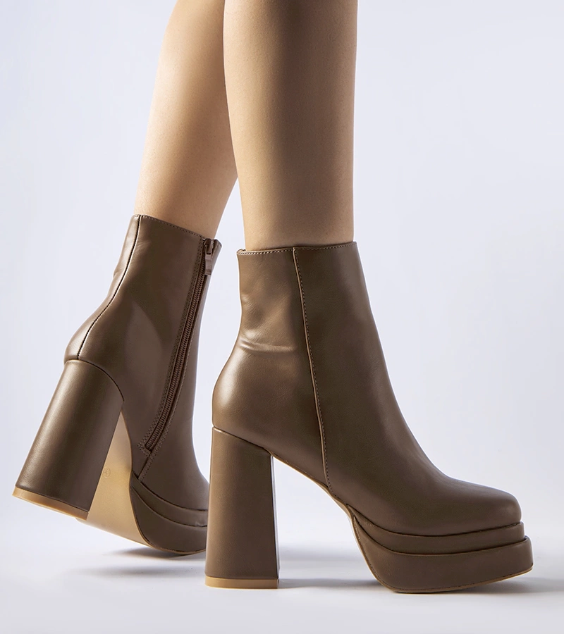 Hnědé kotníčkové boty na vysokém podpatku Ashwood