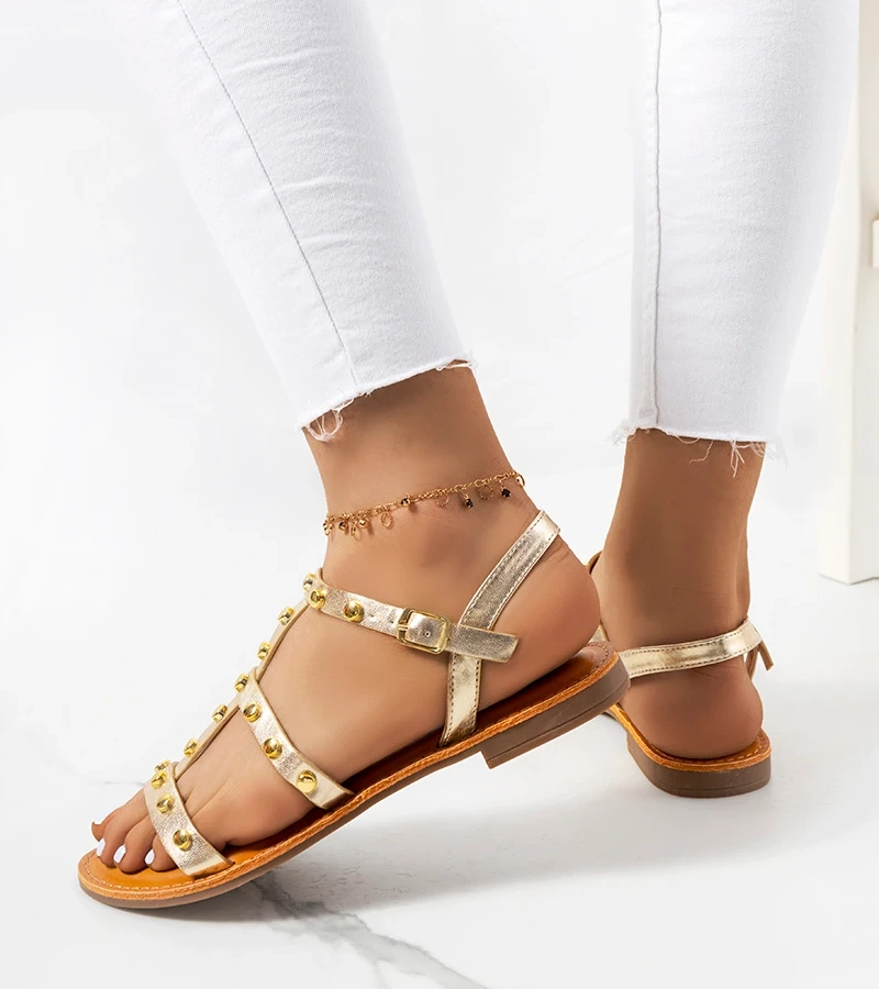 Zlaté sandály zdobené zirkony od Leilany