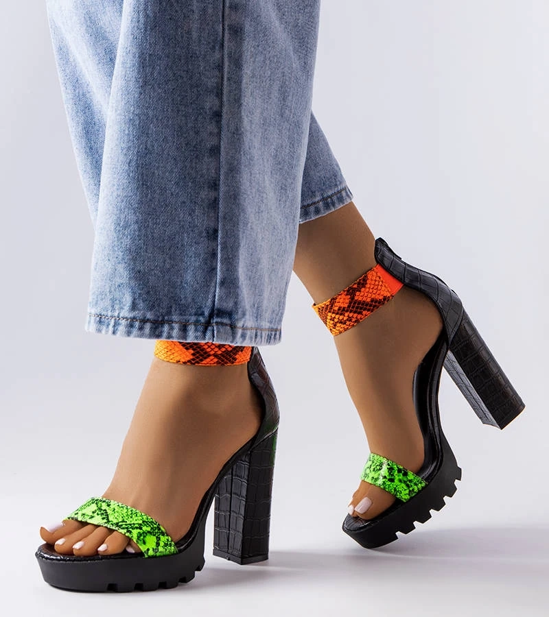 Černé sandály na jehlovém podpatku s reliéfem Giuliana