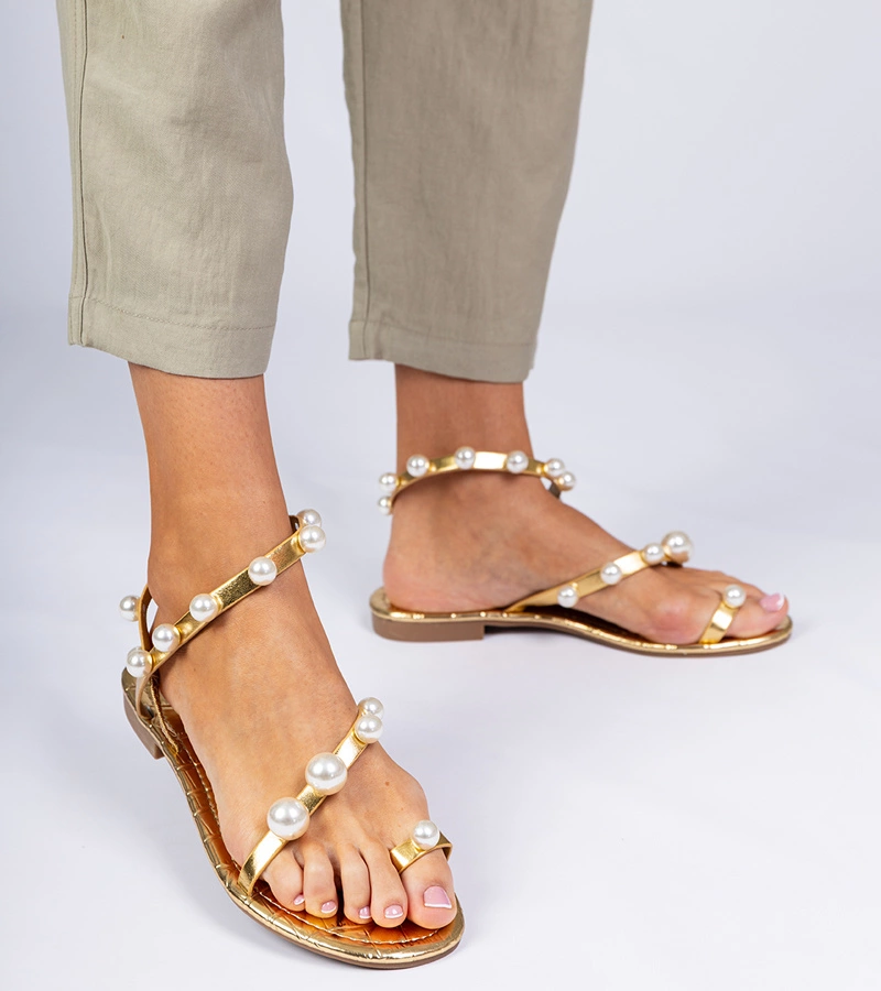 Zlaté dámské sandály zdobené perličkami Sarino