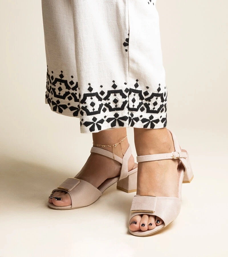 Béžové sandály na podpatku zdobené sponou Elevira