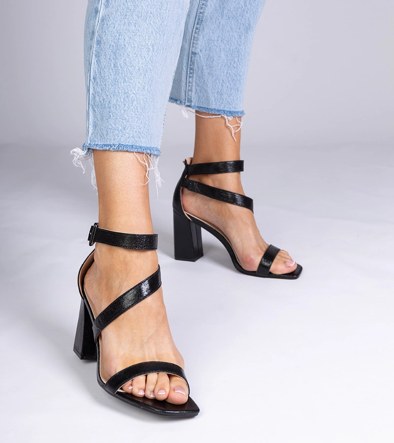 Černé sandály s kamínky na futuristickém podpatku Kenni