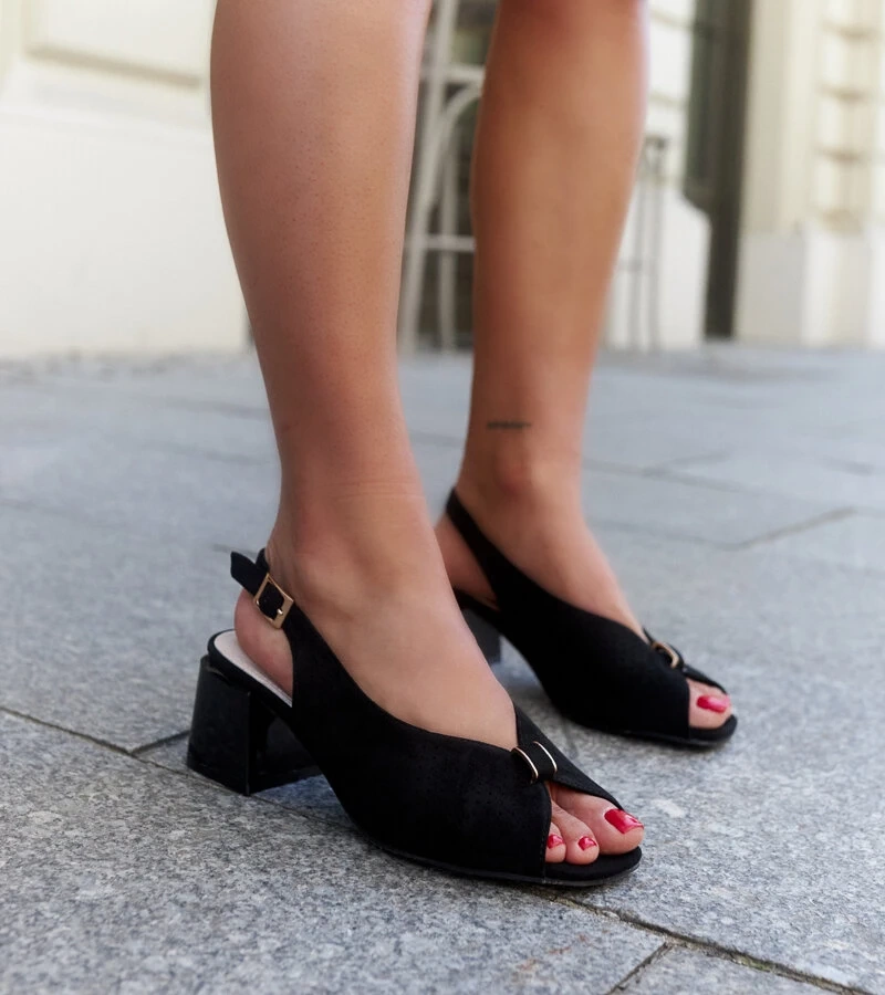 Černé sandály na podpatku s kůžovou vložkou Saiha