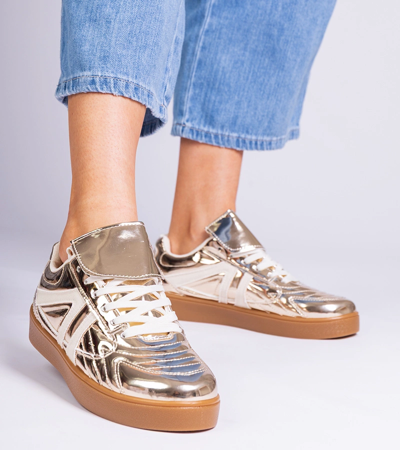Zlaté dámské tenisky na silné podrážce zdobené třpytkami Dolla