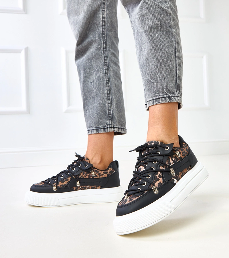 Černobílé tenisky na platformě s leopardím motivem Felizia