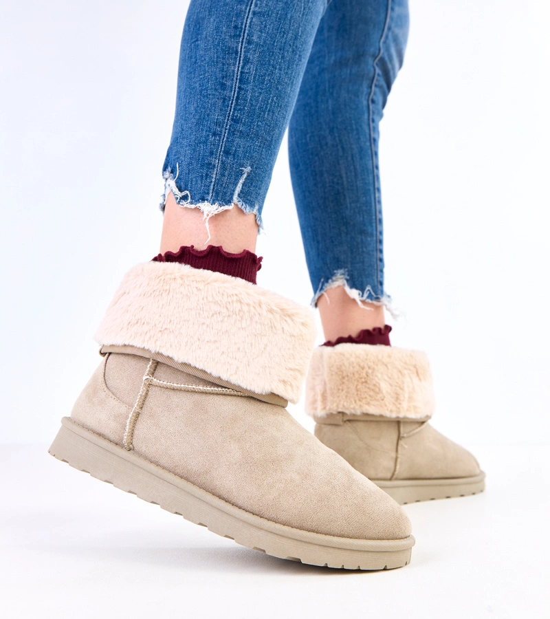 Světlobéžové zateplené sněhule šněrovací zdobené kožešinou Istiss