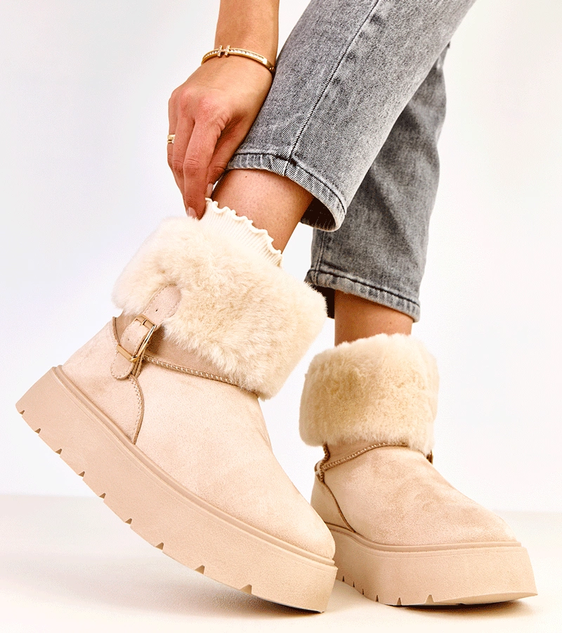 Béžové sněhule na platformě zateplené kožíškem Andra