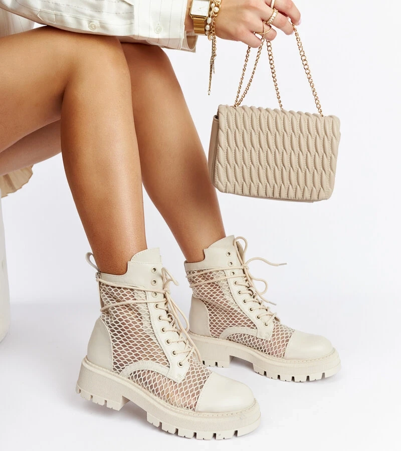 Béžové vystlané dámské boty Foca