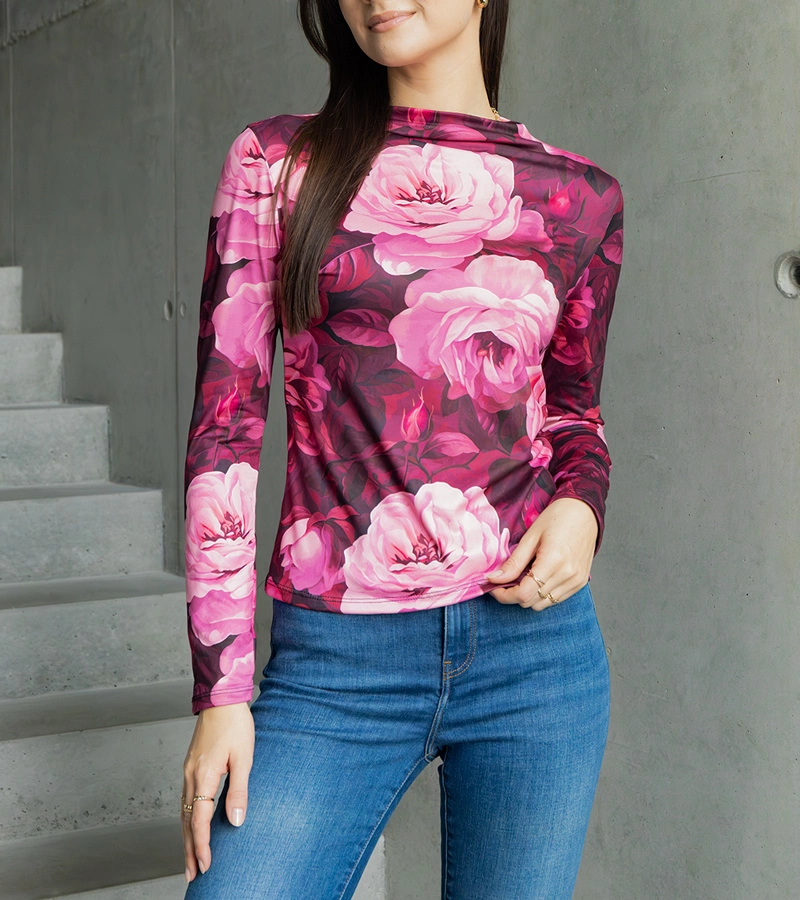 Dámský fuchsiový svetr s krátkým rukávem ozdobné knoflíky Shela