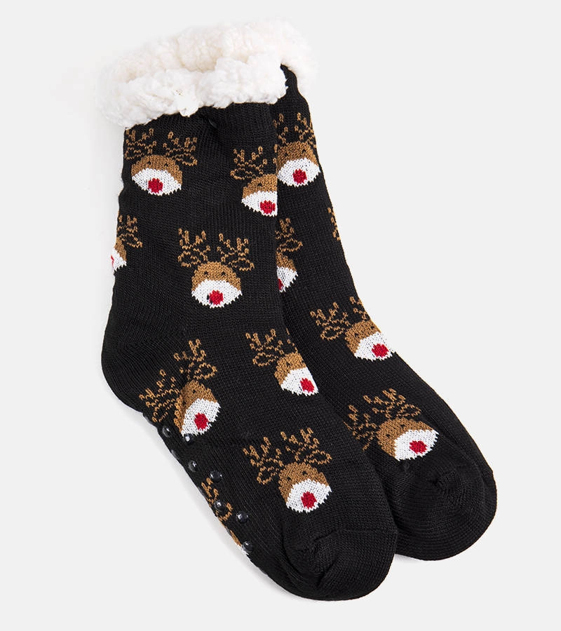 Šedobílé zimní ponožky s ovčí kůží Grondi