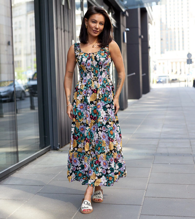 Tmavě zelené maxi šaty s krátkým rukávem Cinaglia