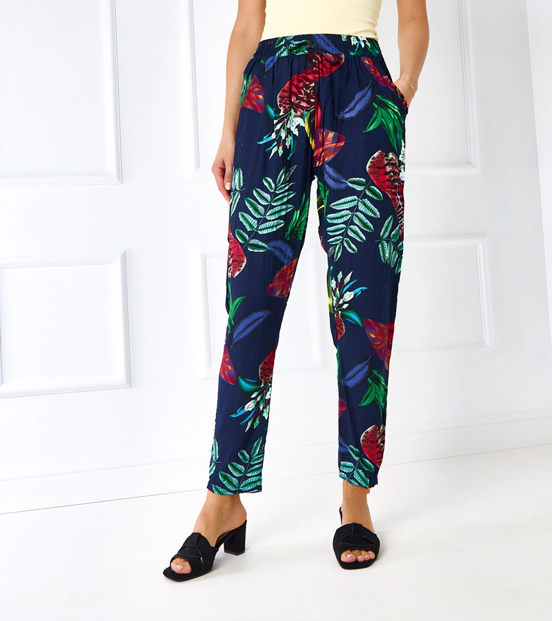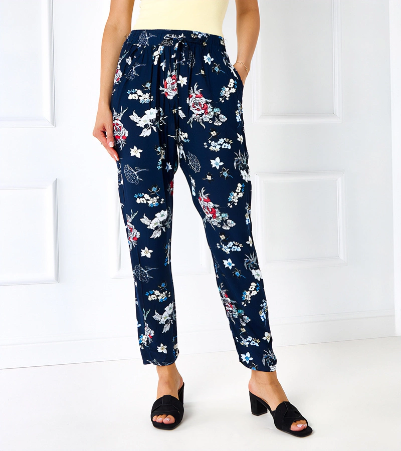 Béžové plisované kalhoty Macognano s květinovým vzorem