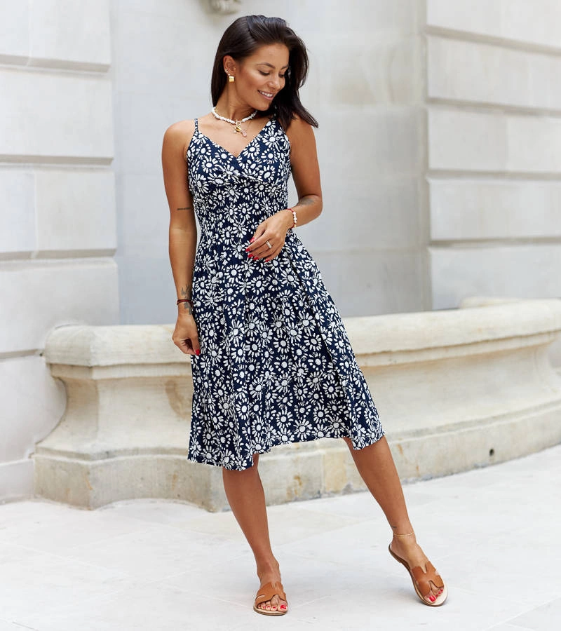 Bílé květinové midi šaty Rosanna SH22-278# BÍLÁ