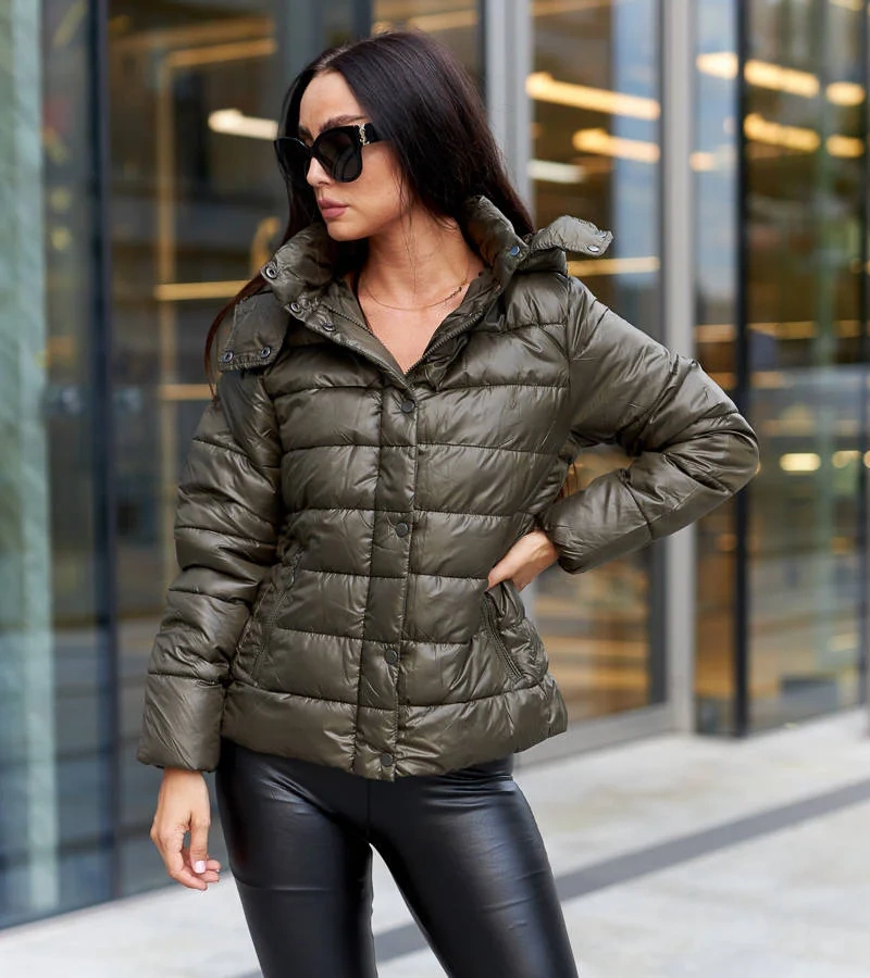 Tmavě zelená lesklá bunda Berta