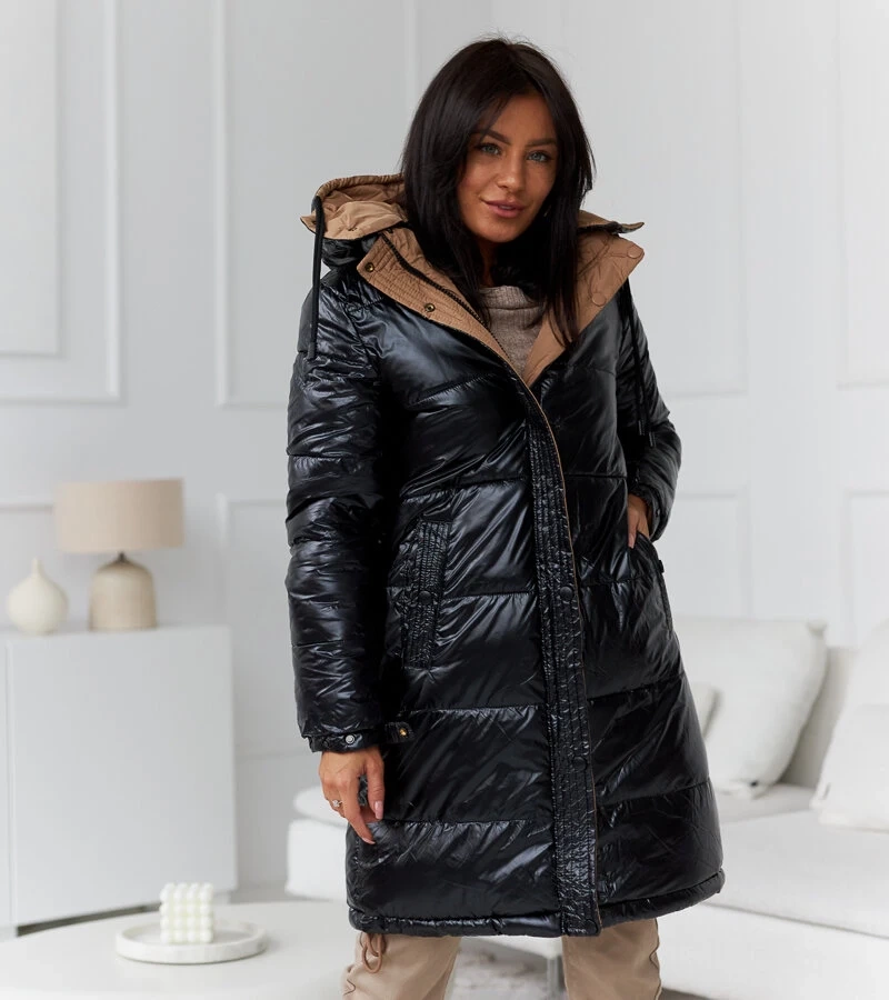 Černě hnědá teplá dvoustranná bunda Scalette