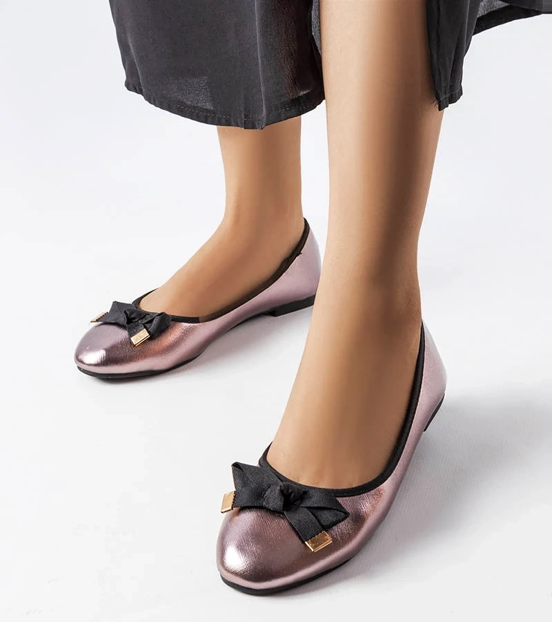 Béžové metalické baleríny s mašlí Hawk