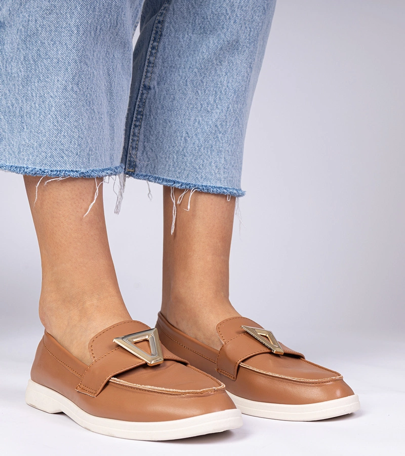 Hnědé dámské mokasíny se zlatou ozdobou Senna