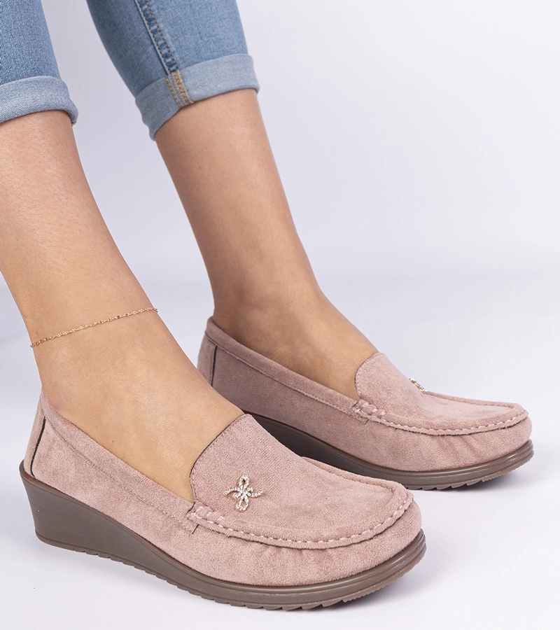 Růžové dámské mokasíny na klínku z eko semiše Sarimi