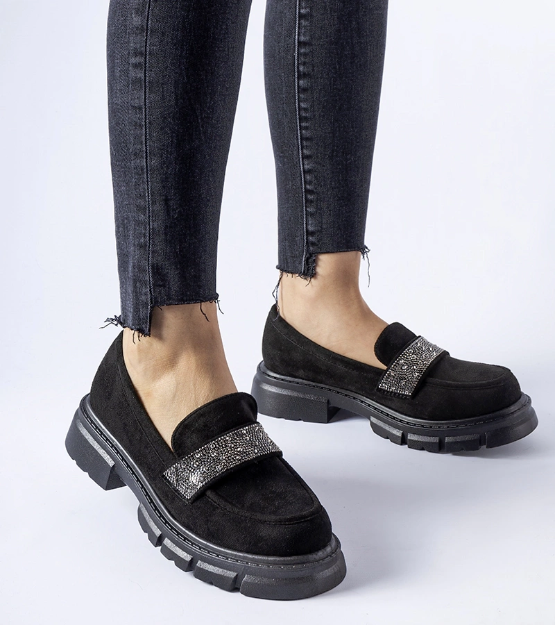 Černé elegantní kotníčkové boty na podpatku Serbadone