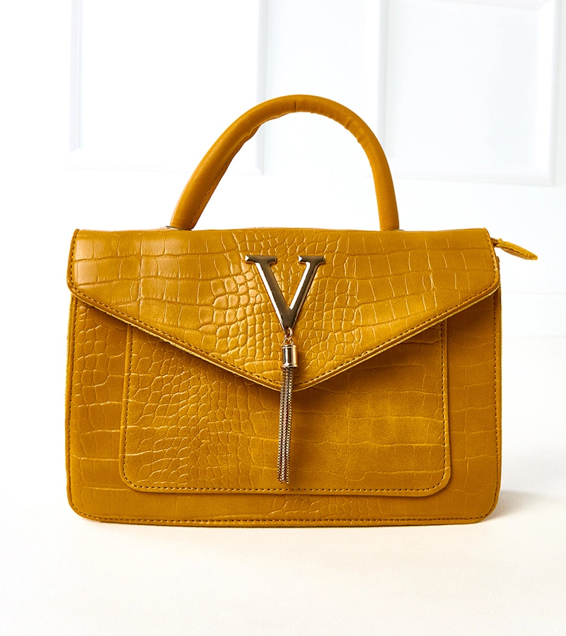 Žlutá kabelka typu "kufrík" na řetízku Dratche