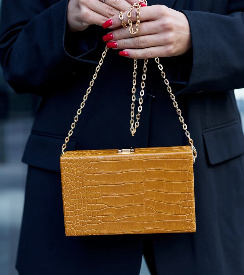 Žlutá kabelka typu "kufrík" na řetízku Dratche