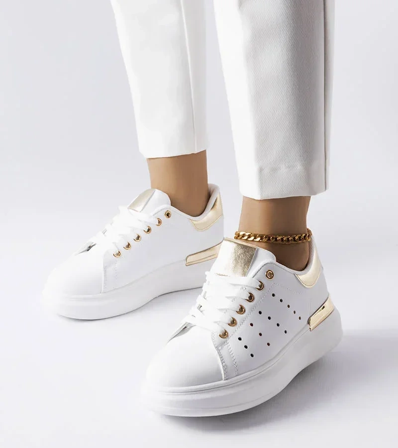 Zlaté jehlové podpatky zdobené reliéfem Raison