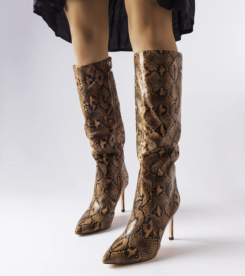 Hnědé boty na podpatku z hadí kůže Carmine