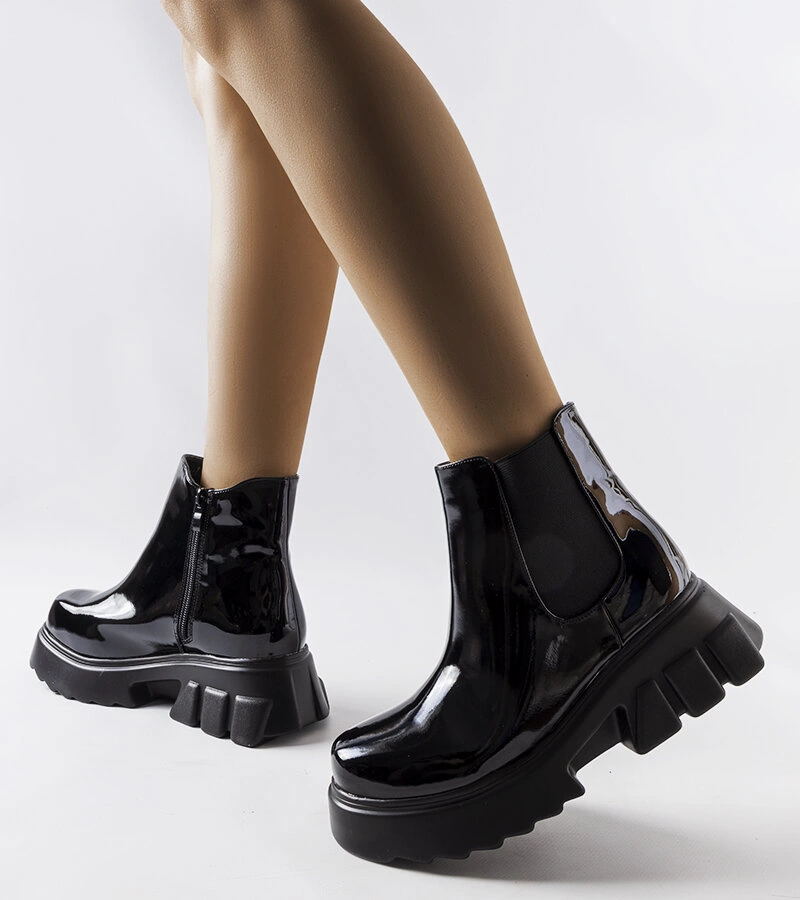 Černě lakované zateplené boty Delit