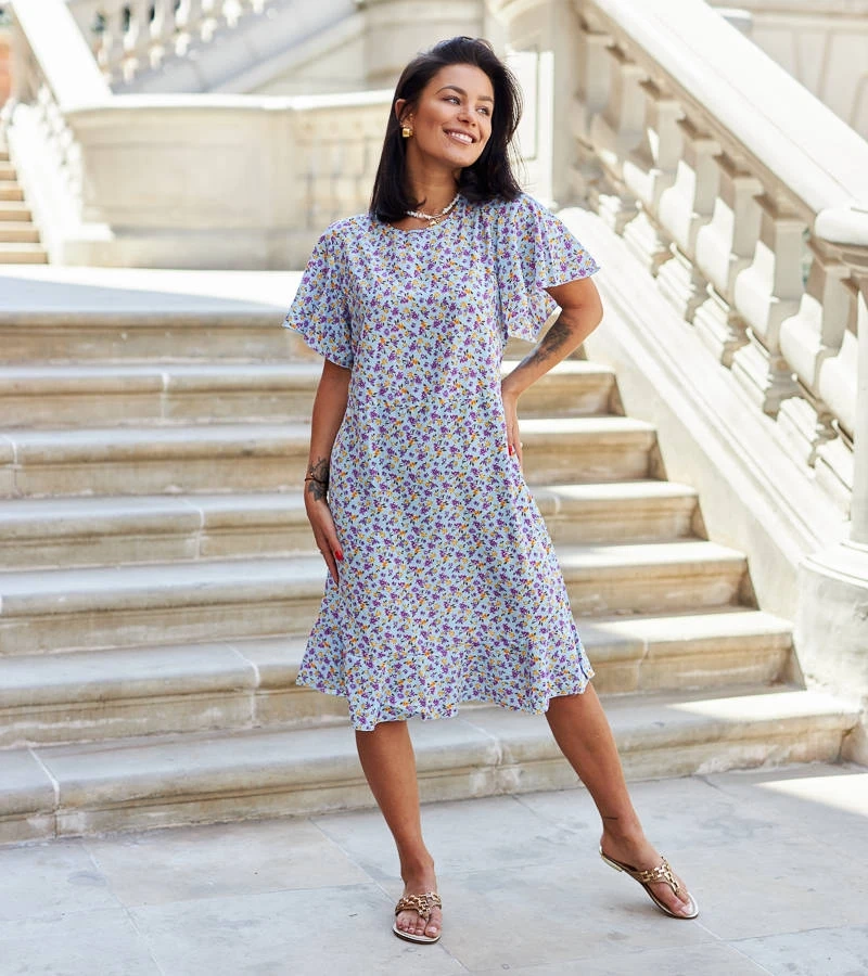 Ottavio fialové květinové plisované šaty