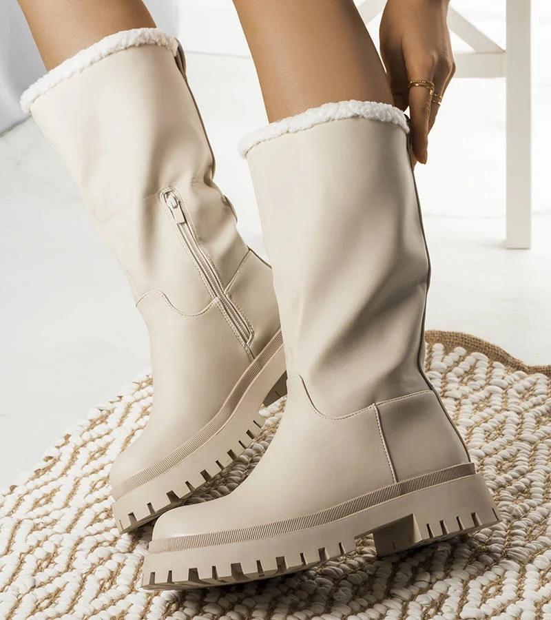Camelové zateplené sněhové boty s kožešinou Wren