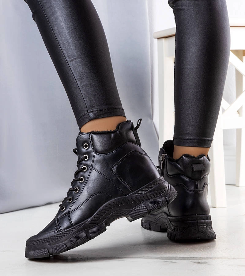 Černé zateplené sněhule z umělé kožešiny od společnosti Crina