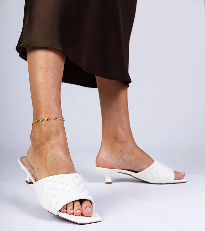 Bílé žabky Launay na nízkém podpatku