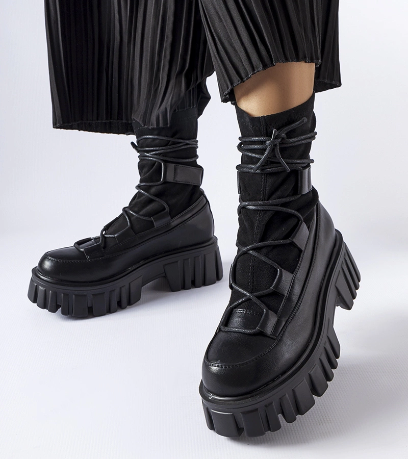 Černé vázané kotníkové boty s kubickými zirkony Latsch