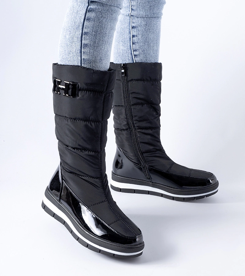 Dlouhé černé kozačky s ozdobným zipem Nadwa
