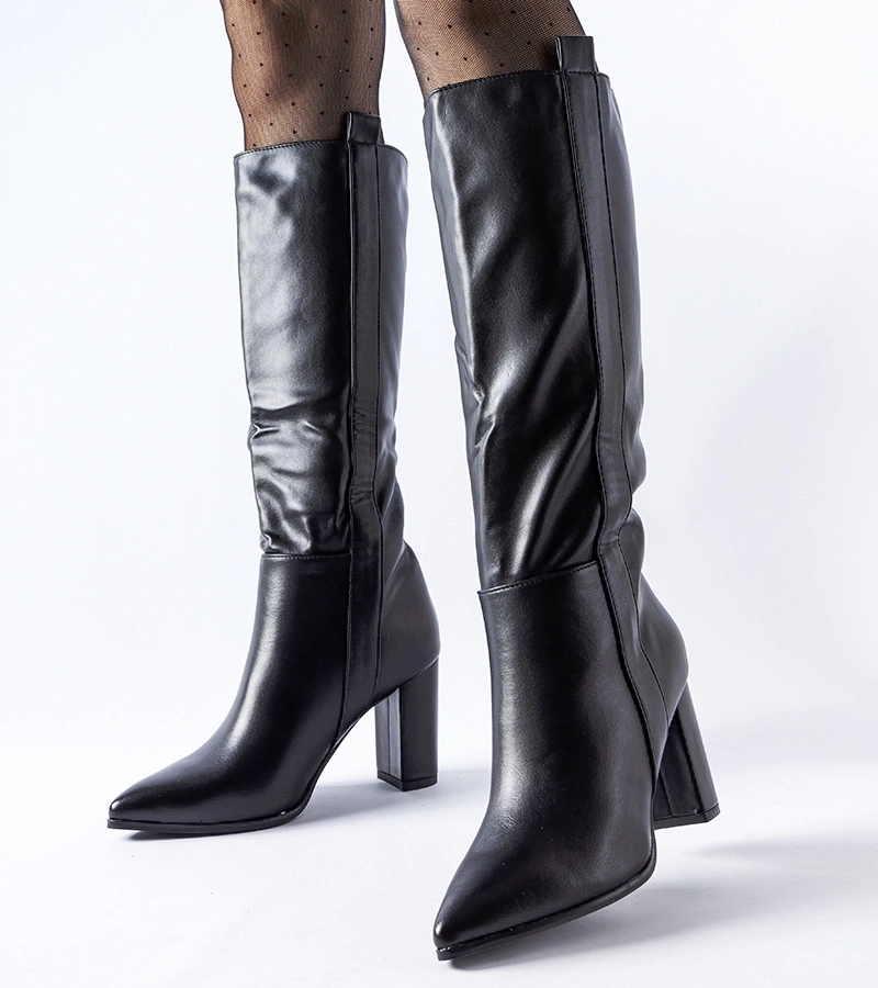 Černé dlouhé teplé kozačky na podpatku Canavese