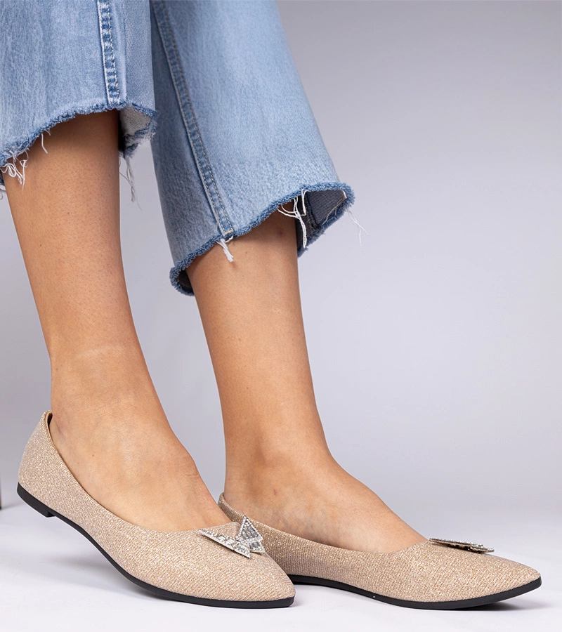 Zlaté dámské baleríny třpytivé s motýlkem Denny