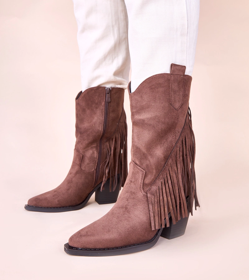 Hnědé kovbojské boty s třásněmi Elama