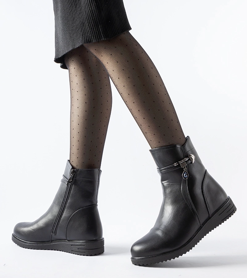 Černé zateplené kotníčkové boty s ozdobným podpatkem Clivi