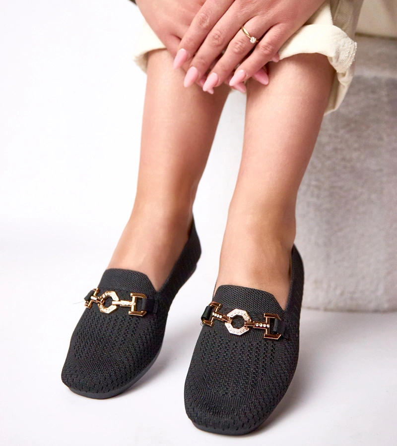 Černé látkové mokasíny se zlatou ozdobou Mathilde