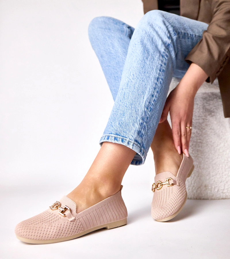 Růžové látkové mokasíny se zlatou ozdobou Mathilde