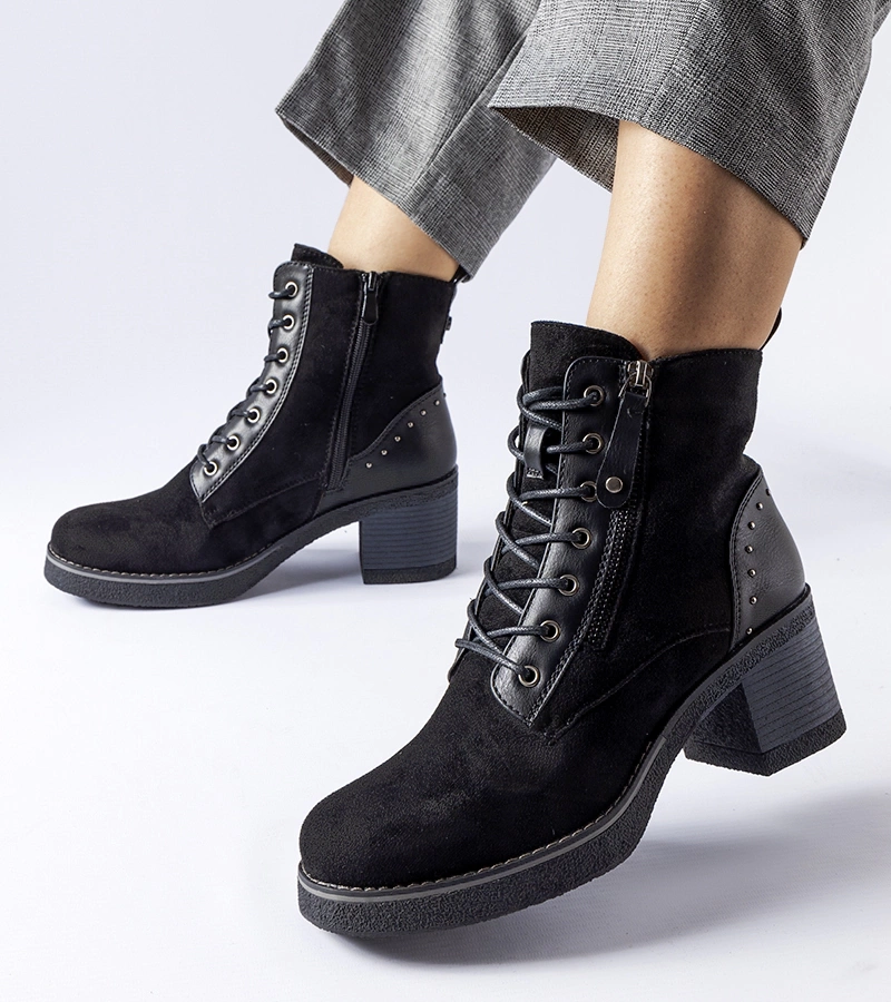 Černé kotníčkové boty na podpatku z ekosuede Graziella