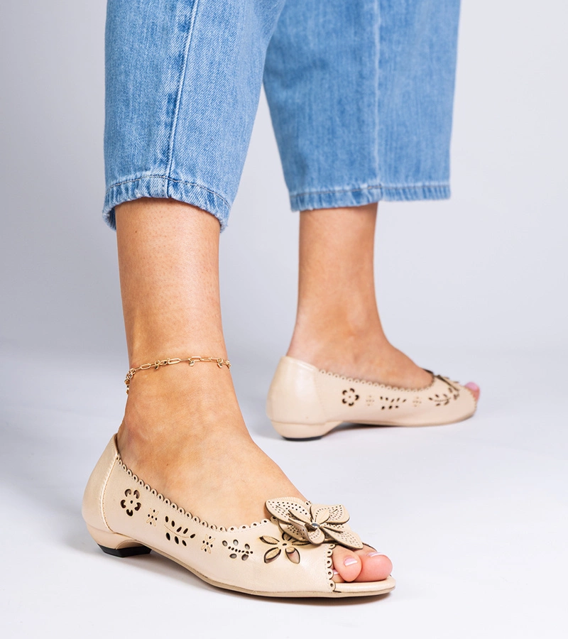 Béžové ažurové baleríny s otevřenou špičkou Ursull